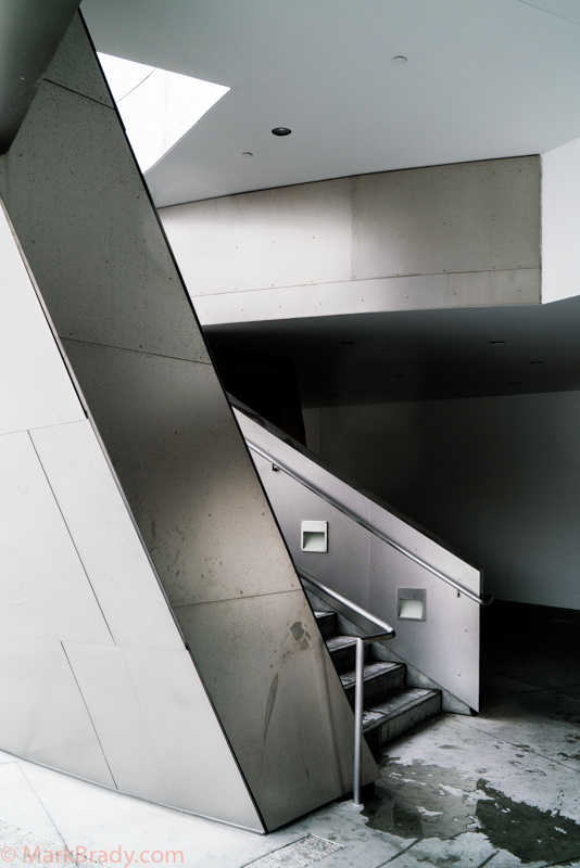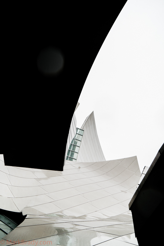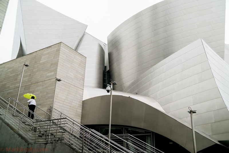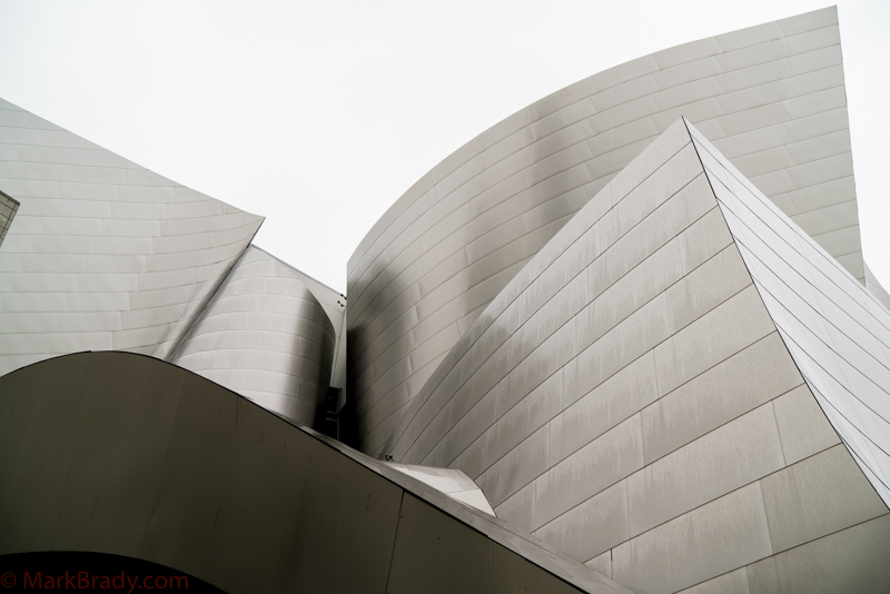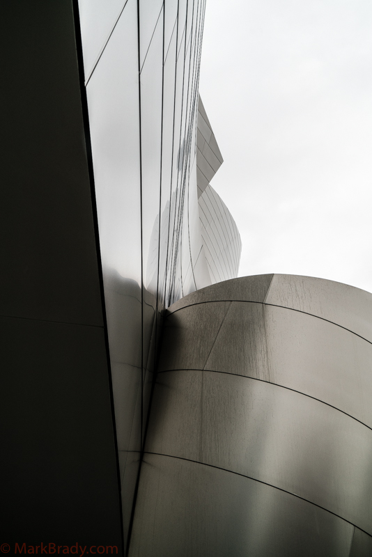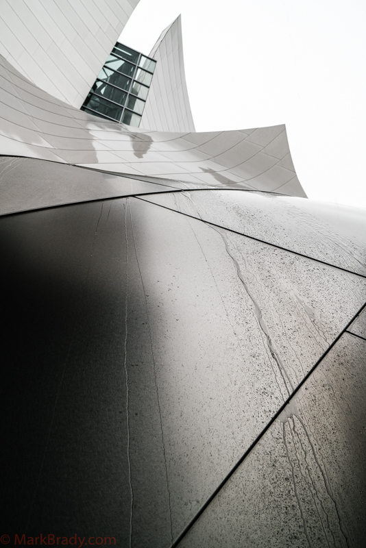 Disney Concert Hall+Rain=Perfect! February 26, 2016 I was able to take advantage of a rainy day to capture some unique light on this architectural gem by Frank Gehry in Los Angeles recently. The gray sky worked to create a more monotone and thus a more compelling image for me.